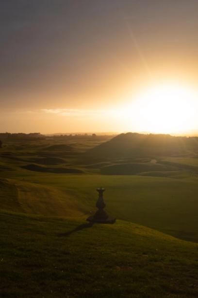 As I round the dogleg on the par 5 17th the fading light casts my long shadow across the fairway. Towering dunes line the left side of the hole and swoop round the back of the green. The clubhouse appears through the wall of dense gorse on the banking, framing the closing hole.