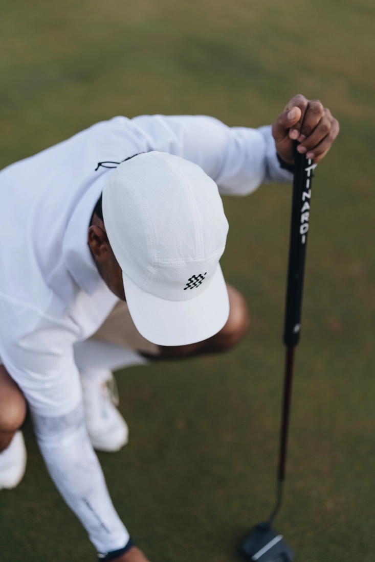 The Frontier Tech Cap borrows from running, cycling and other outdoor sports to bring a new essential garment to the fairways. A one size fits all cap made from technical fabrics so you've got one less thing to think about when shaping seven irons into wind at a tucked flag. The most stylish and functional golf hat we've ever made.